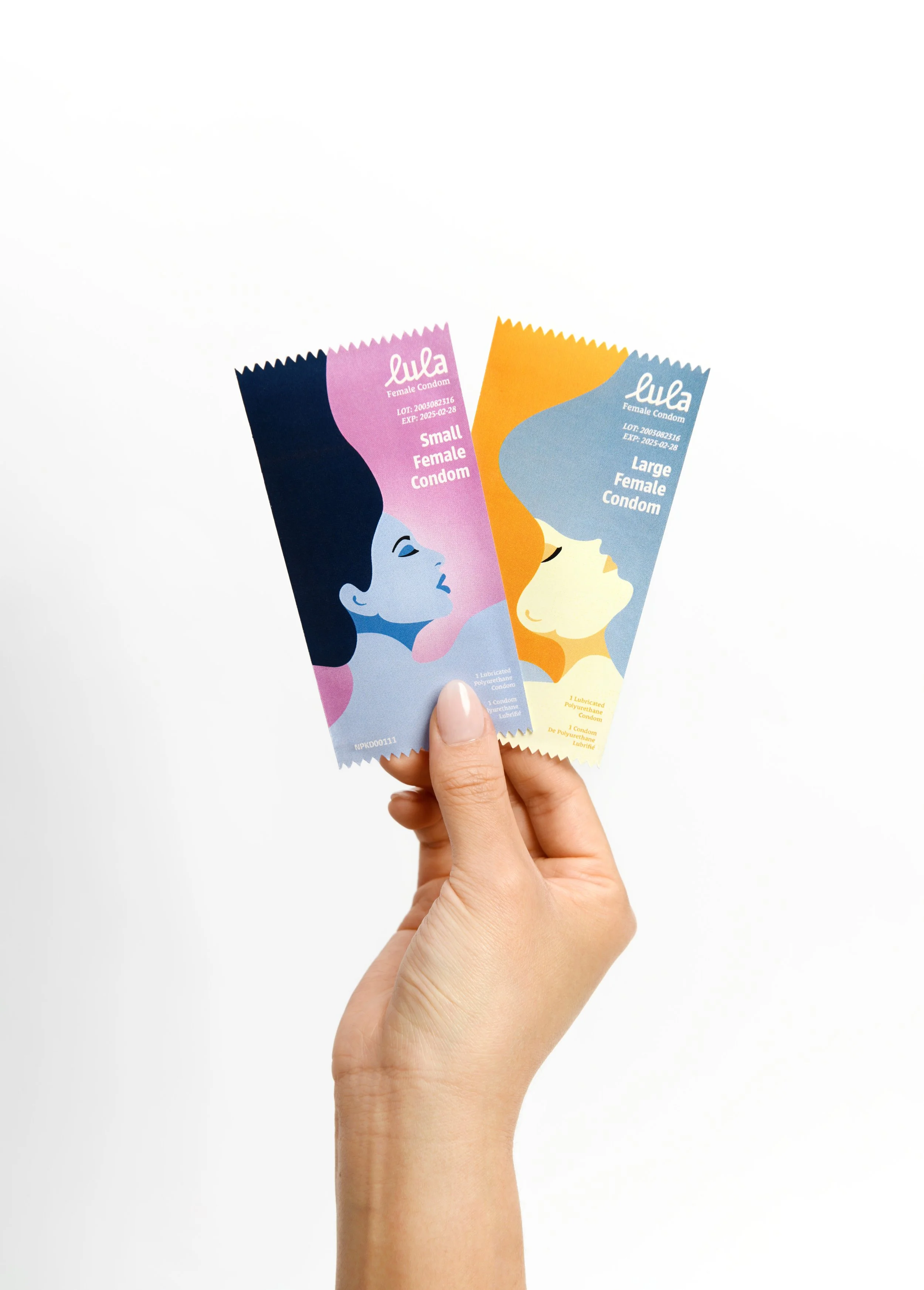 Packaging design for an FDA-approved brand specializing in user-friendly female condoms and personal lubricants.
