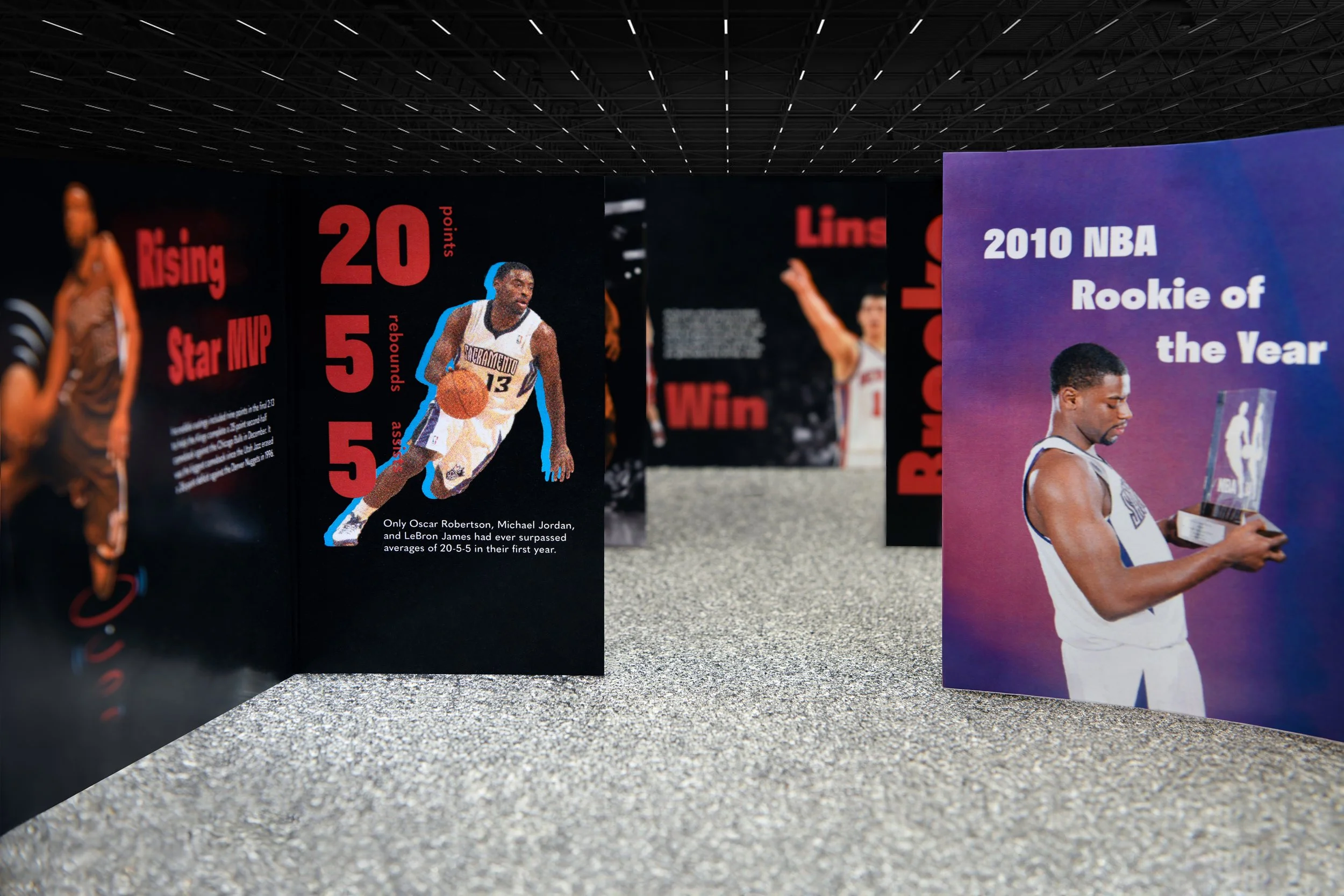 At the end of the exhibition, visitors are greeted by three distinct rooms, each showcasing the highlighted players: Tyreke Evans, Aaron Brooks, and Jeremy Lin.